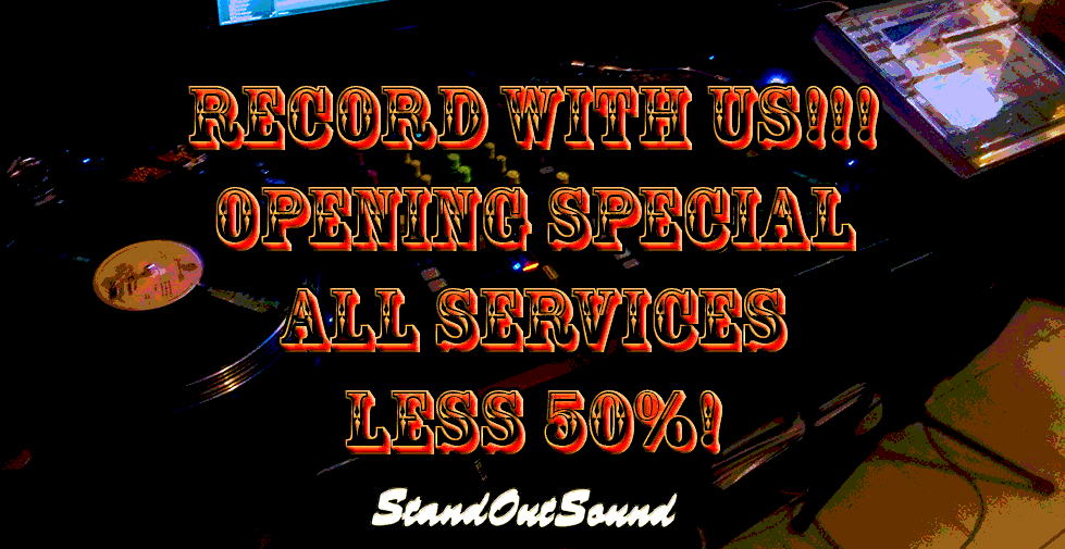 To celebrate our official opening we’re running an amazing promotion for April with less 50% across the entire range of our services!!! That’s right… Until the end of April, you can record your song’s vocals, voice-over, poetry, singing or even your DJ Mix for just R150 per hour and that is also the minimum charge over this period(if you